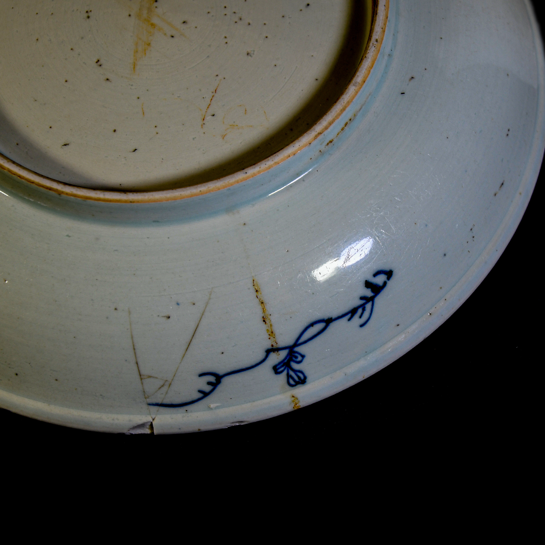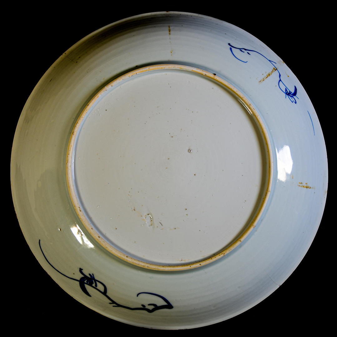 Condition report The charger is in excellent antique condition. Its only flaw is three hairlines coming off the rim, which do not distract from its beauty – they are clearly visible in the pictures. There are some specks baked into the glaze, see last picture. There is no other damage and no crazing or wear.