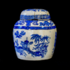 Jar: Taupe/Blue/Grey-Ceramic, Round Ginger Jar Floral/Oriental Scenic Design 4″