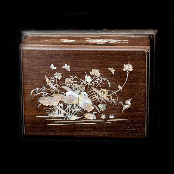 Antique Box Pencil Or Sewing Wood And Mother-of-Pearl Vietnam Towards.