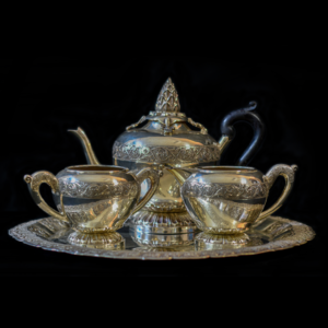 RARE Victorian Silver over Pewter Coffee Pot, Silver Plate Coffee Pot, Bone Handle, Etched Design in Silver, Mid 1800’s.