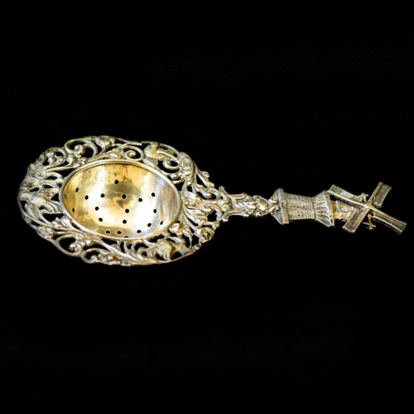 Dutch Sterling Silver Tea Strainer with Windmill Finial.