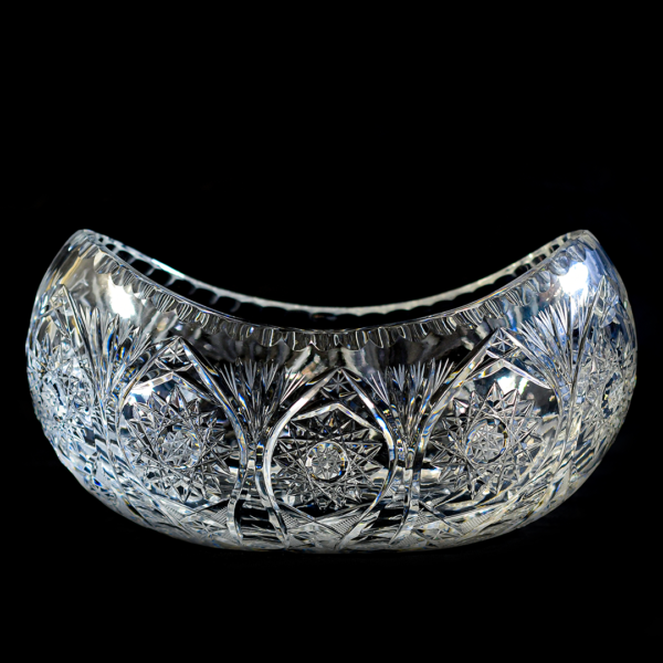Beautiful antique Bohemia bowl made of lead crystal with cut from the 30s fine hand-cut glass bowl in an elongated shape.