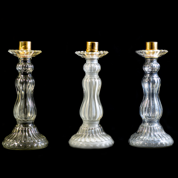 PAIRE DE BOUGEOIRS BOUTEILLES ANCIENS FLACON ROGER GALLET PARFUM VERRE.