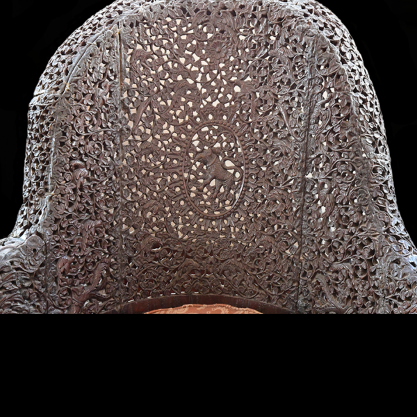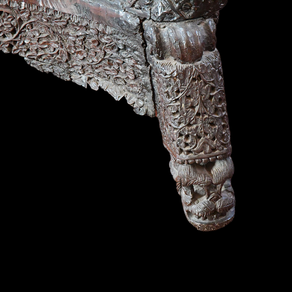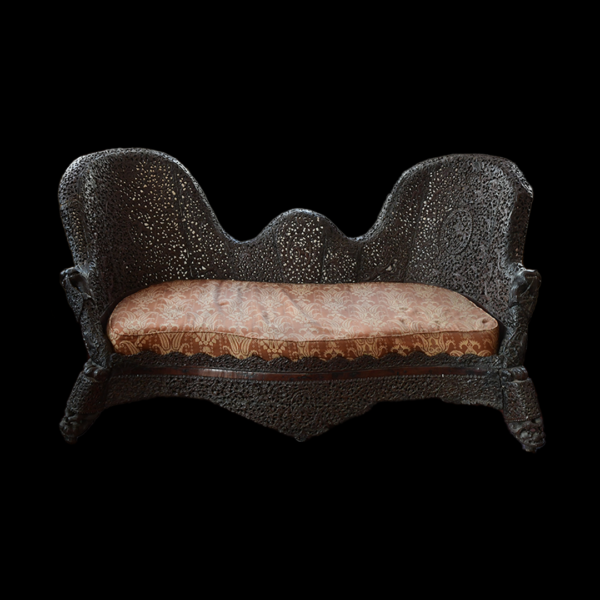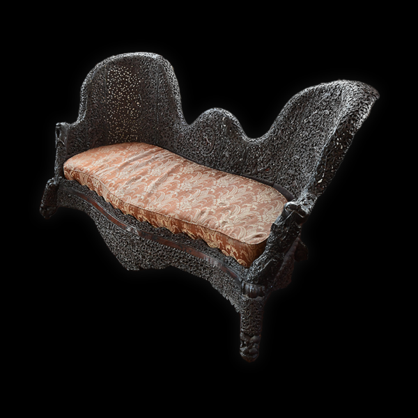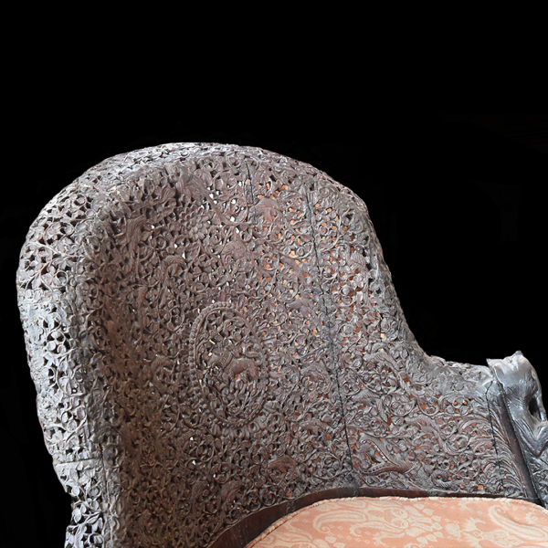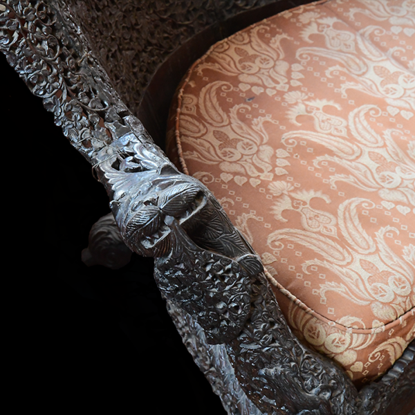 The sofa is part of a suite of furniture that belonged to Mr and Mrs James Richard Naylor. They acquired it in Bombay, India, after their marriage in 1868.